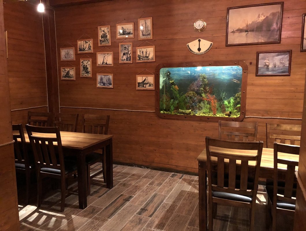 Отличное место! Первый раз были около года назад - остались довольны кухней и обслуживанием, сейчас ходим по пятницам или субботами! Спокойная красивая музыка, а главное нет быдла и шума! Цены доступные: горячее 200-300р салаты 80-200р! Алкоголь качественный! А главное атмосфера-все в дереве и всякие детали в морском стиле, а так же 3 огромных аквариума с необычными рыбами и даже медузами!!! Вообщем кто хочет славно отдохнуть и покушать-вам сюда!!!
